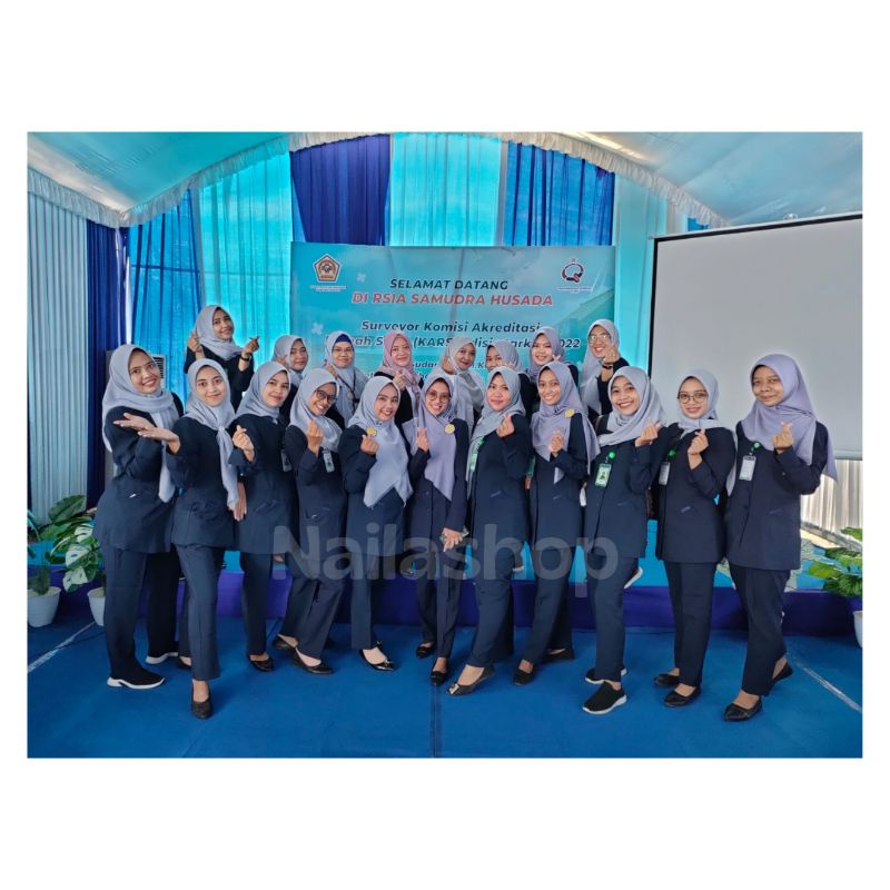 SETELAN BAJU SERAGAM KERJA BIRU DONGKER GURU WANITA KEREN READY SET ROK & CELANA