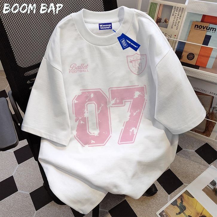 Kaos Oversize Unisex American Retro Street Style | T-shirt Pria Wanita 100% Cotton Motif Ledakan Pink 07 Kaos Hitam
