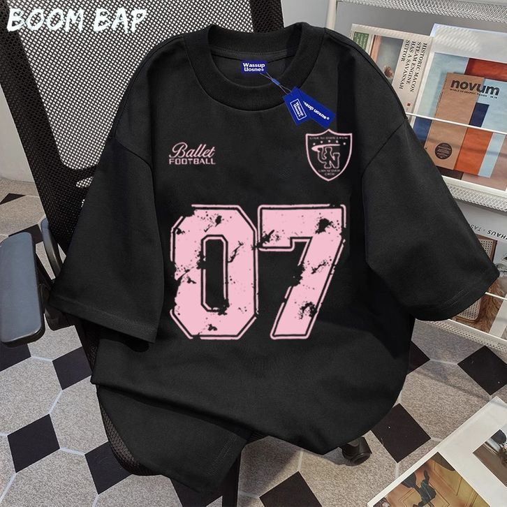 Kaos Oversize Unisex American Retro Street Style | T-shirt Pria Wanita 100% Cotton Motif Pink Aesthetic 07 Kaos Hitam