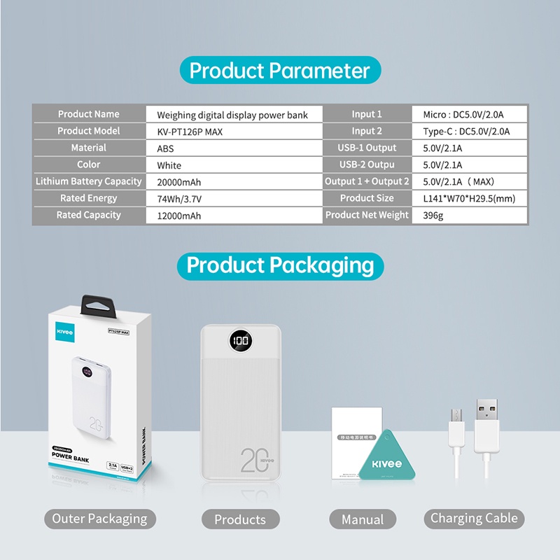 KIVEE 5 Warna Powerbank 20000 mAh Real Power Bank 10000 mAh mini original Dual Output Dual Input Tipe C & Micro