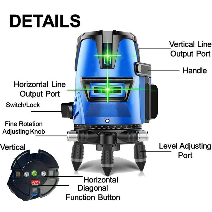 Laser level 4D 5 line Level Self Leveling Projector 360 Rotari laser laser Siku Untuk Bangunan 5-line laser level