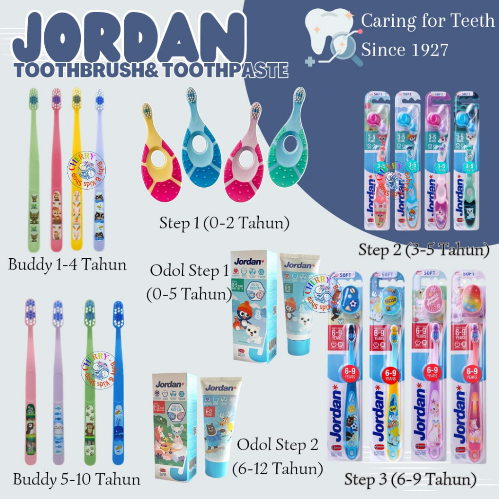 JORDAN SIKAT GIGI & PASTA GIGI / SIKAT GIGI BUDDY 1-4 TAHUN 5-10 TAHUN / SIKAT GIGI STEP 1 2 3