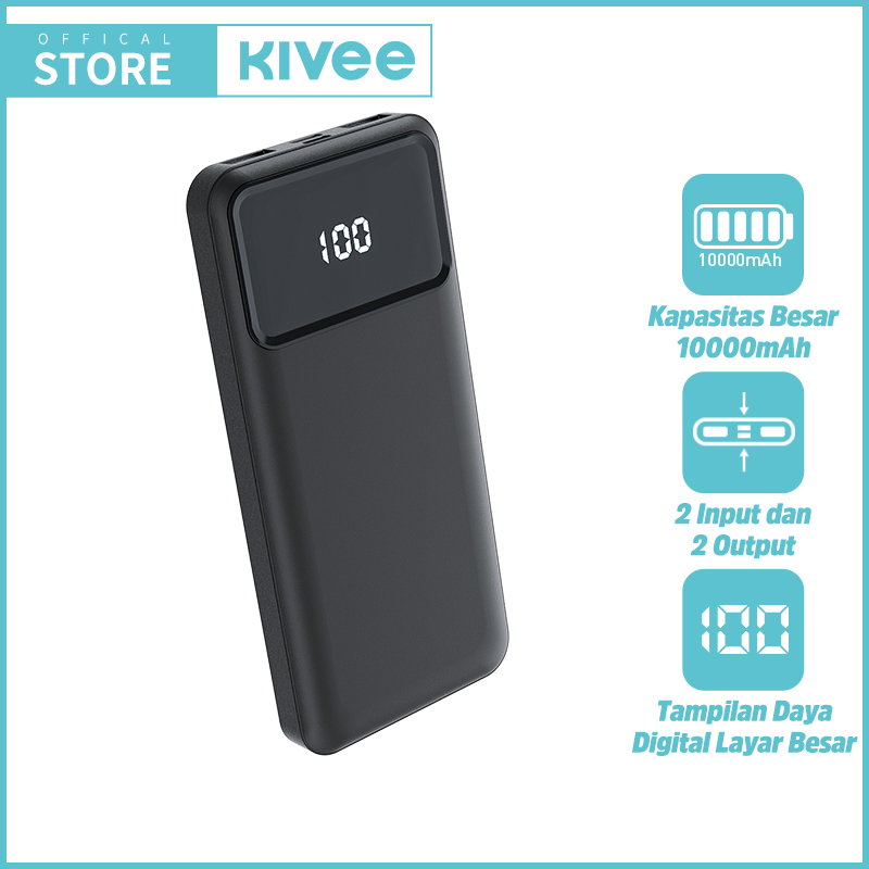 KIVEE LCD Powerbank 10000 mah mini murah power bank dual usb Black- Garansi 1 tahun
