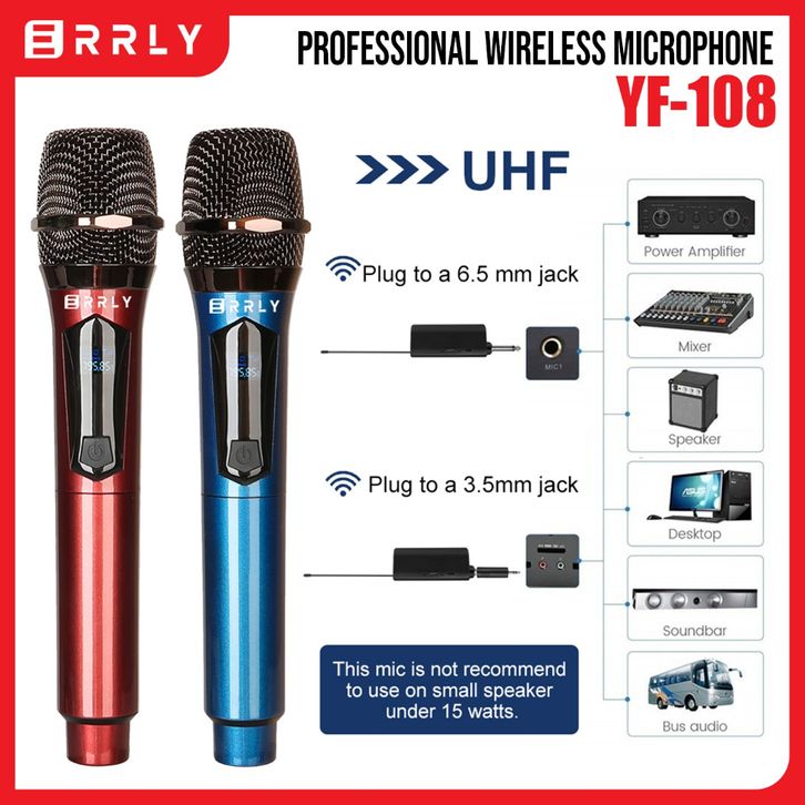 Single Mic Karaoake Wireless Tanpa Kabel Microphone karaoke ERRLY MIC-1 YF58 / YF108 with Receiver System Mic Karaoke Ge