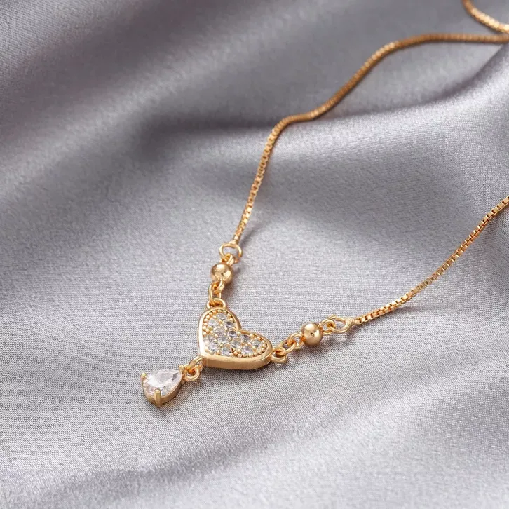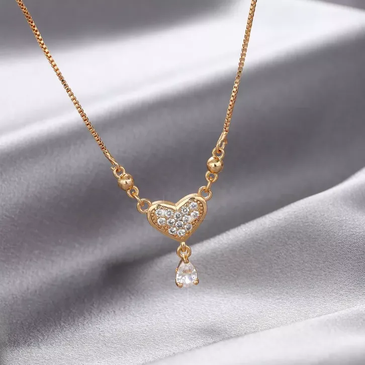 Kalung Model Batu Cinta Berhiaskan Berlian Wanita Grosir Murah D066