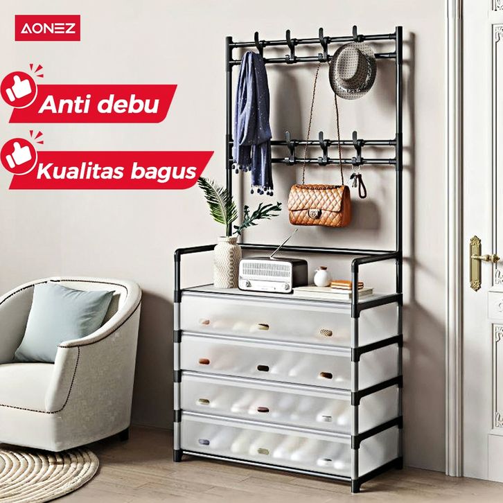 Rak Sepatu Anti Debu 5/6 lapis/2 in1 gantungan baju rak sepatu susun tertutup Besi Kuat Tebal Kokoh Rak Tas Serbaguna