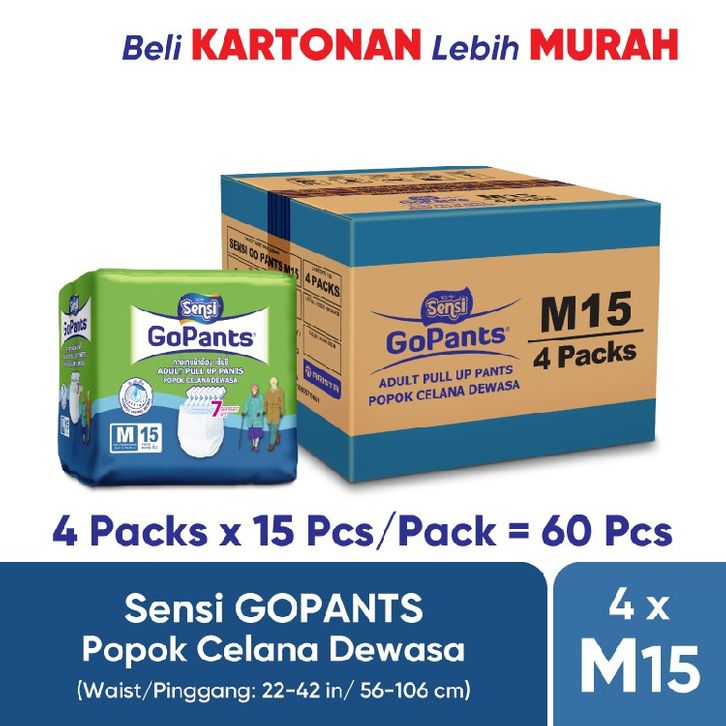 Popok Pampers Pempes Dewasa Lansia SENSI GOPANTS KARTON M15 x 4 Pack 60 Pcs Tipe Celana 1 Dus Termurah