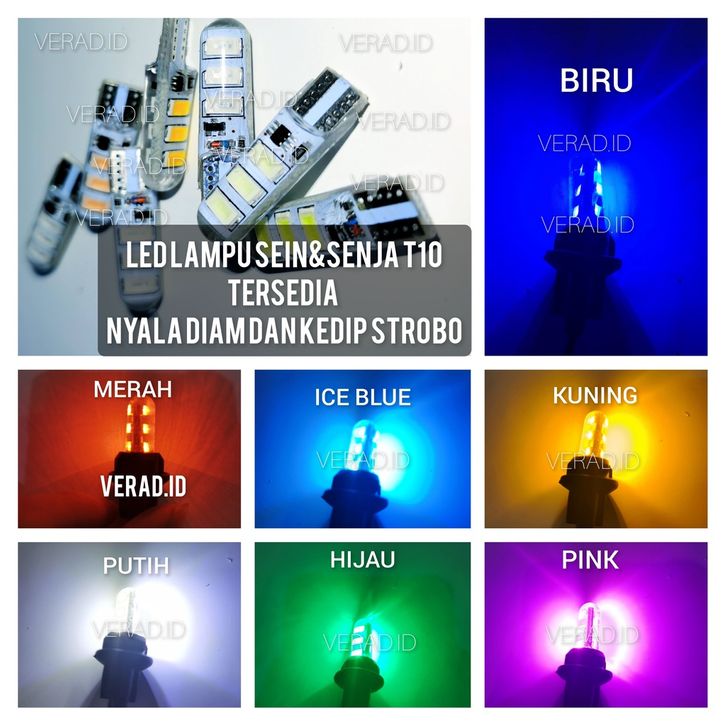4 PCS - T10 Crystal Jelly 6 Mata STROBO/Kedip Led 5730 Lampu Senja Sen/Sein - Biru