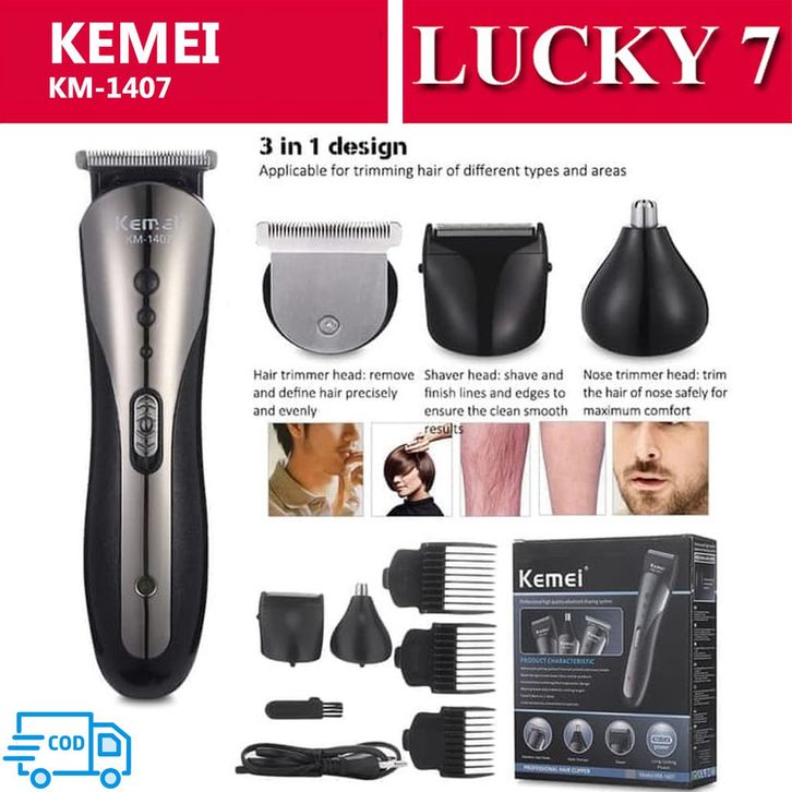 Hair Clipper Kemei KM 1419/ KM 1407 Original 3in1 Alat Cukur Rambut Kumis dan Jenggot Elektrik