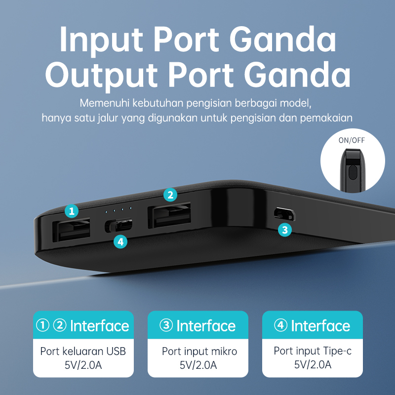 KIVEE Powerbank 10000 mah mini murah power bank dual usb Black- Garansi 1 tahun