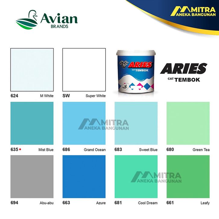 Cat Tembok 5 Kg Aries Avian Dinding Interior Rumah Indoor Outdoor Plafon Beton Triplek Gypsum Kaleng Galon 5kg
