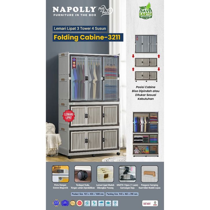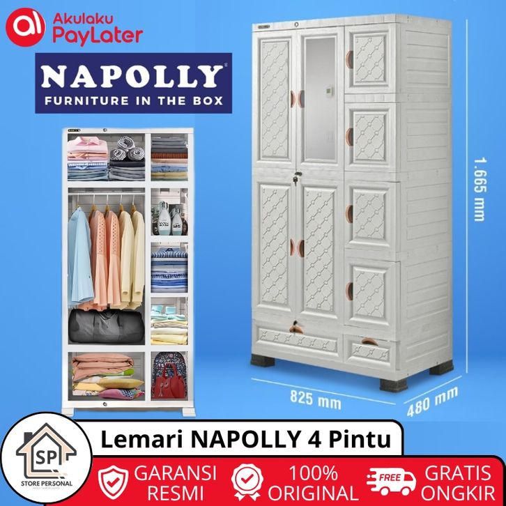 Lemari Plastik NAPOLLY 4 PINTU SUPER JUMBO BESAR GANTUNG KACA CERMIN KUNCI MIDICAB 4408 DC ION PUMA DISKON 30%