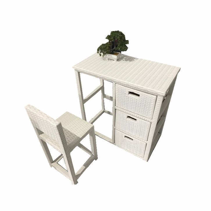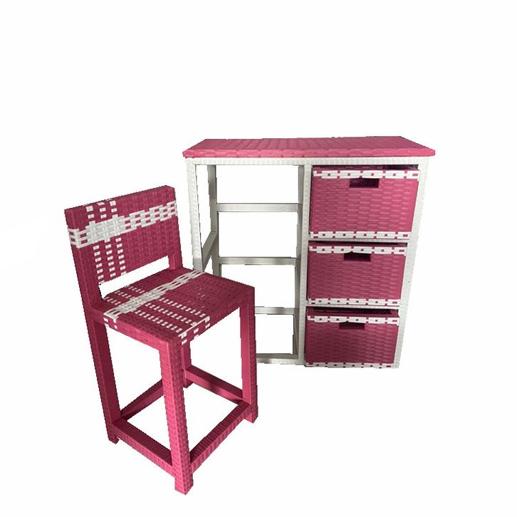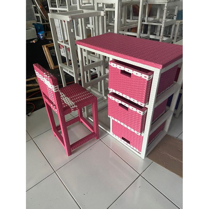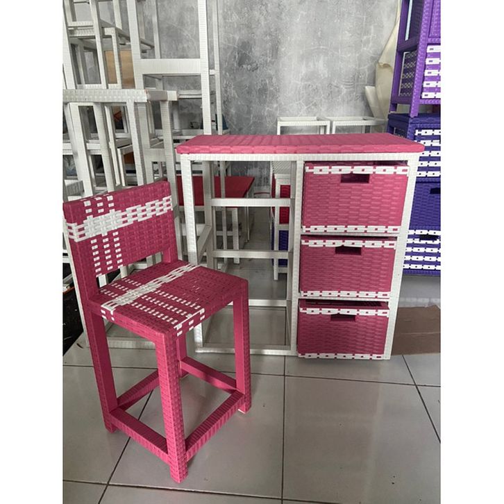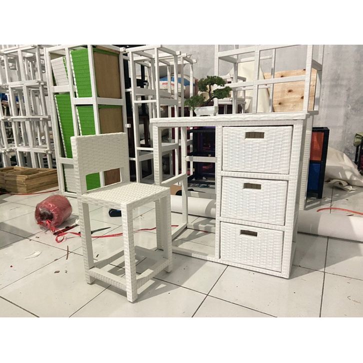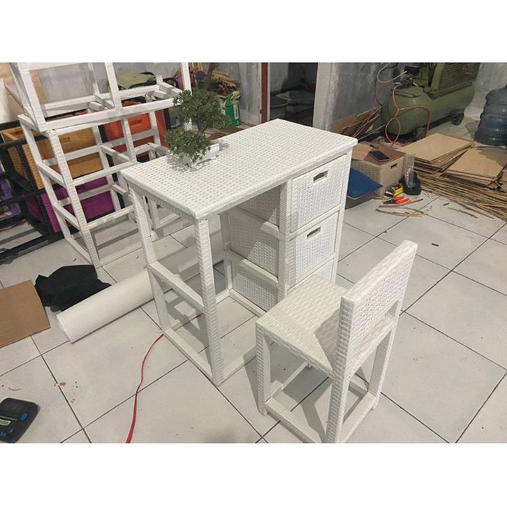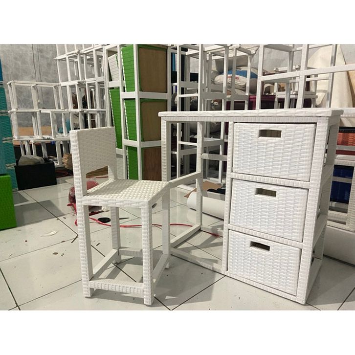 Meja Belajar Kursi Sandaran Rotan Sintetis