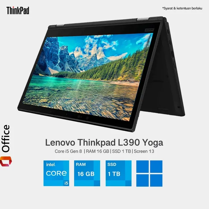 Laptop 2 in 1 Lenovo Thinkpad Yoga L390 L380 Core i5 Gen 8 Ram 16GB Ssd 1TB Touchscreen Flip 360 Second Mulus Bergaransi