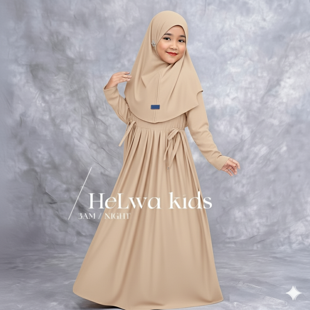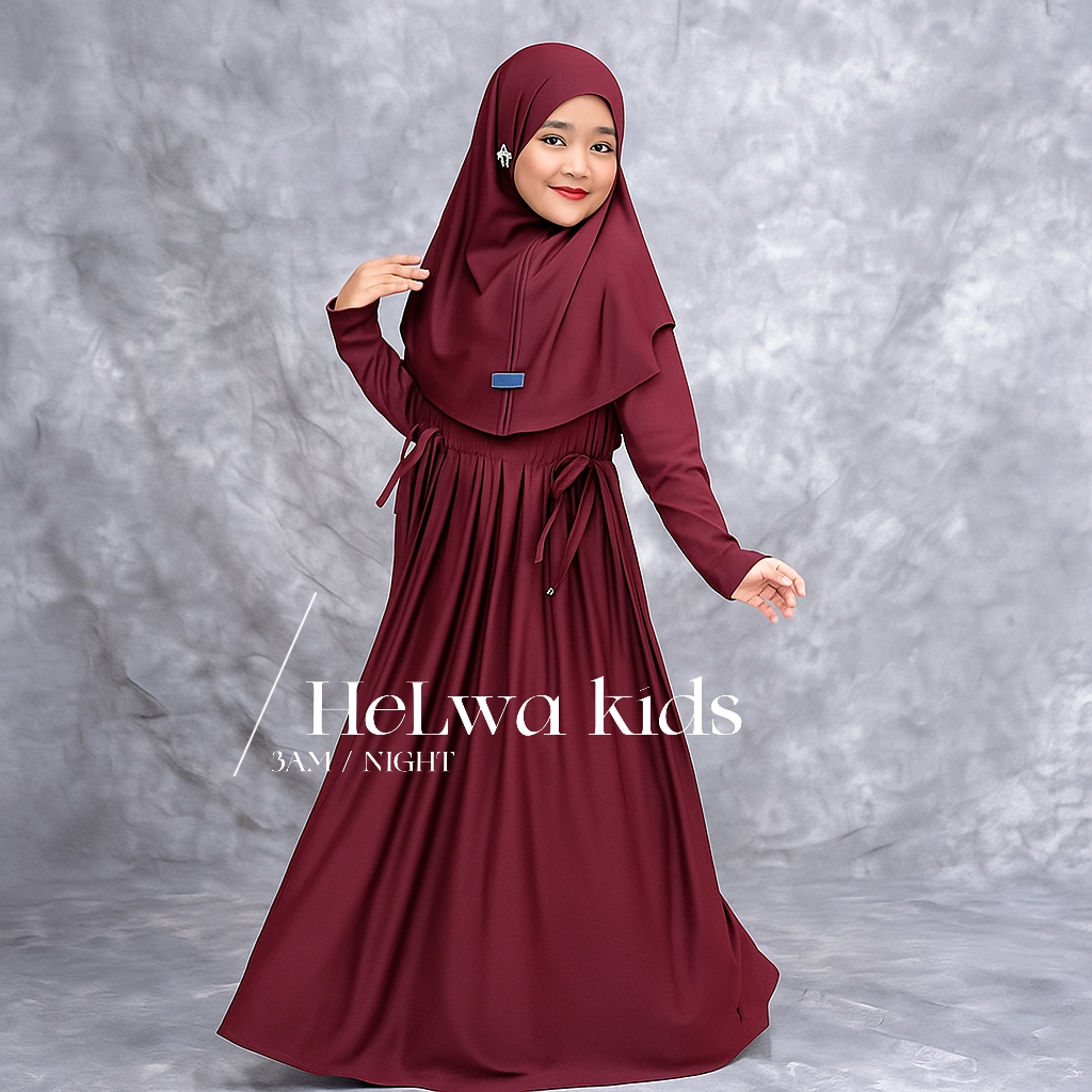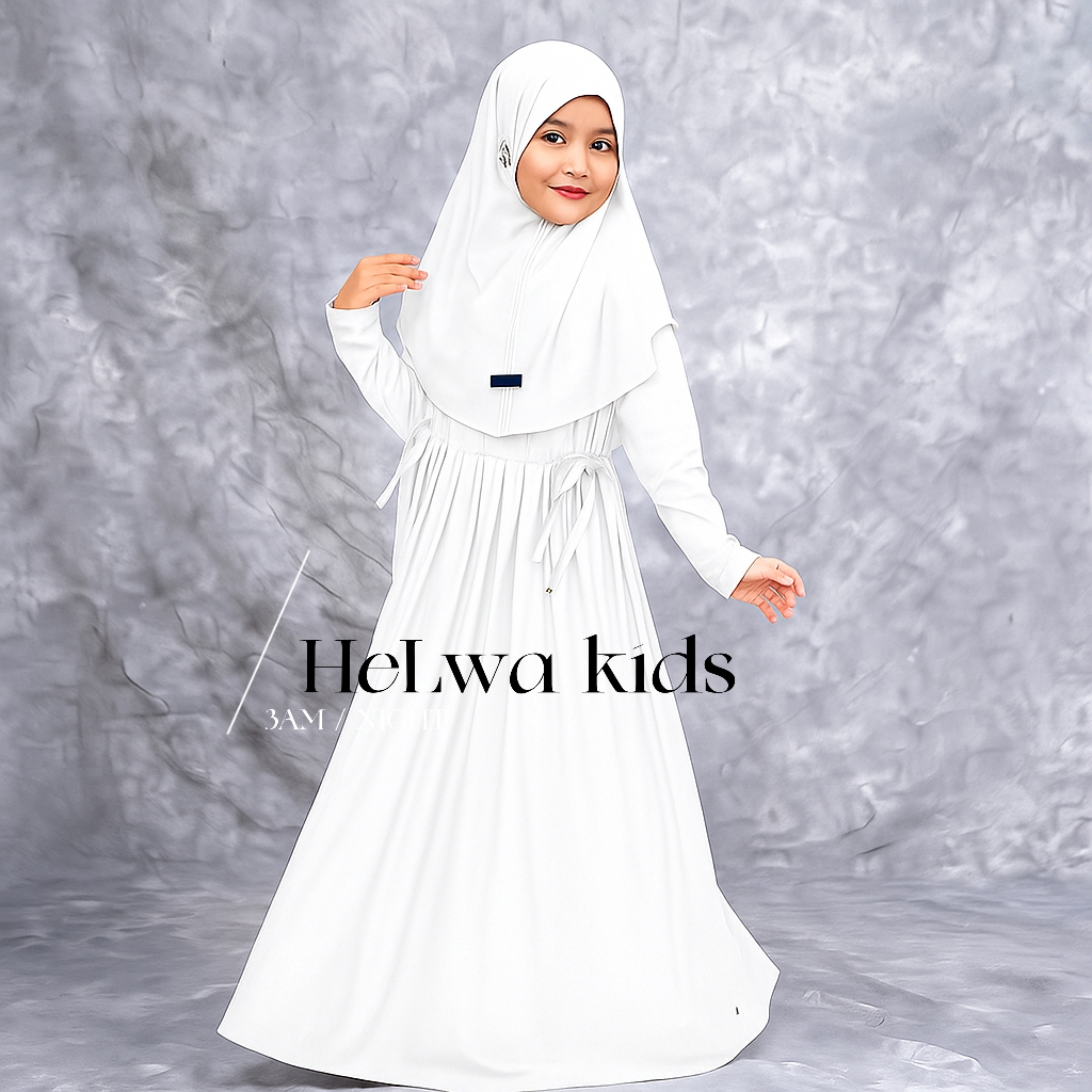 gamis lebaran 2026 Gamis abaya anak set hijab/abaya serut tali pinggang bahan Jersey premium usia 1-10 tahun