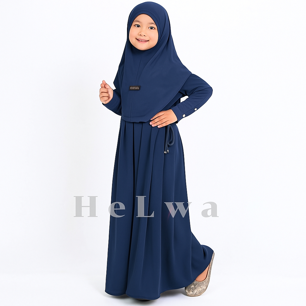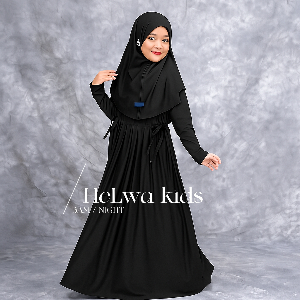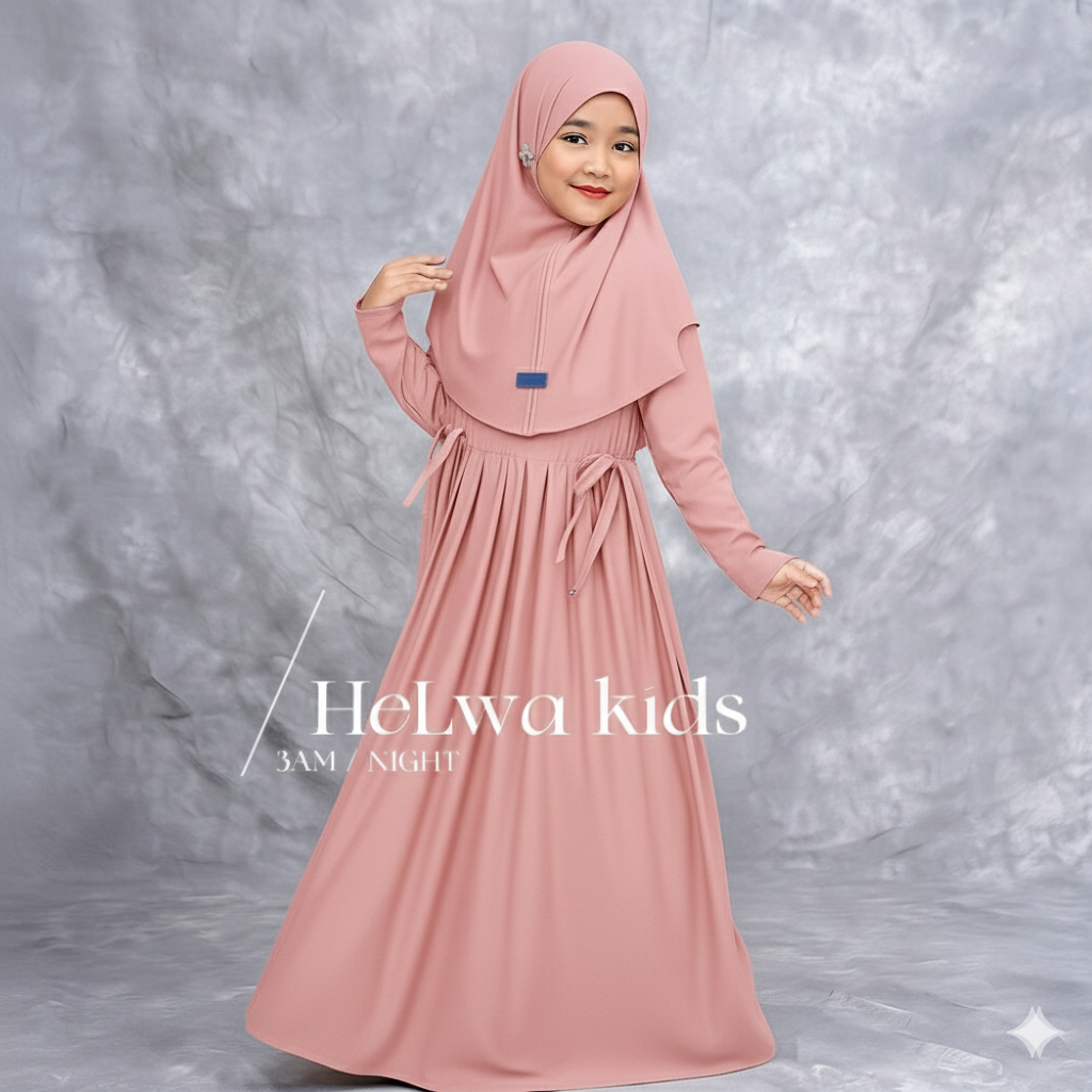gamis lebaran 2026 Gamis abaya anak set hijab/abaya serut tali pinggang bahan Jersey premium usia 1-10 tahun