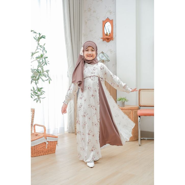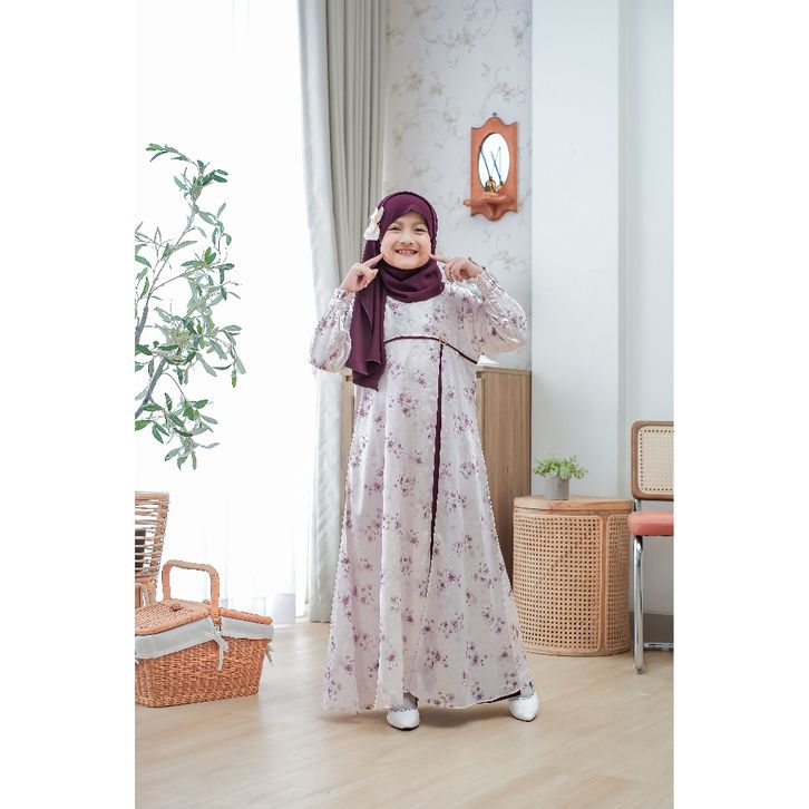 gamis lebaran 2026 Gamis Anak Perempuan 1 Set Premium Umur 4 - 12 Tahun Kombinasi Marbela dan Crespo BordirGamis Anak Pe