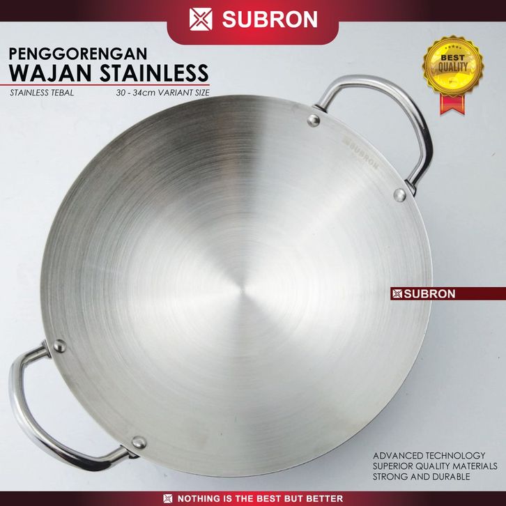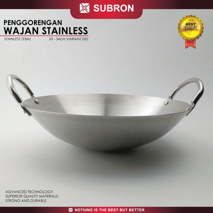 Wajan Penggorengan Stainless Steel Tebal Wok Kuali Goreng 30cm 32cm 34cm