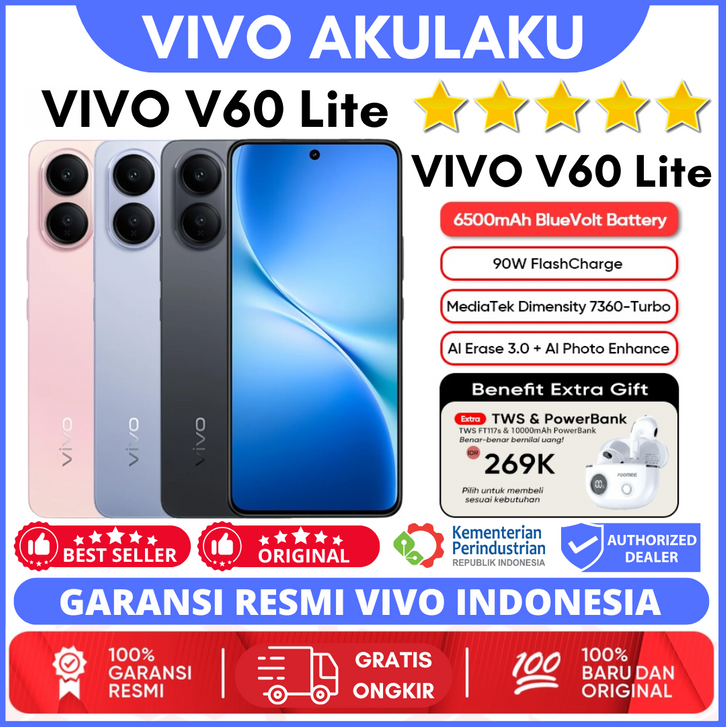 (Vivo Sale) Vivo V60 Lite 4G 8/256GB - 50MP Sony Camera, 6500 mAh + 90W FlashCharge, Bypass Charging, vivo v60 lite
