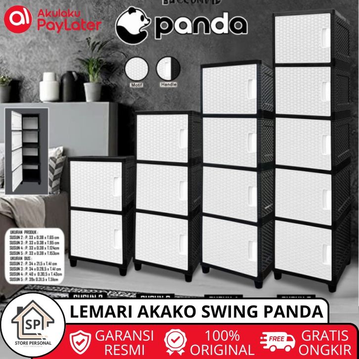 Lemari Plastik Serbaguna Pakaian Laci SWING PANDA Lemari Baju 2 3 4 5 susun MURAH Hitam Putih DISKON 30%
