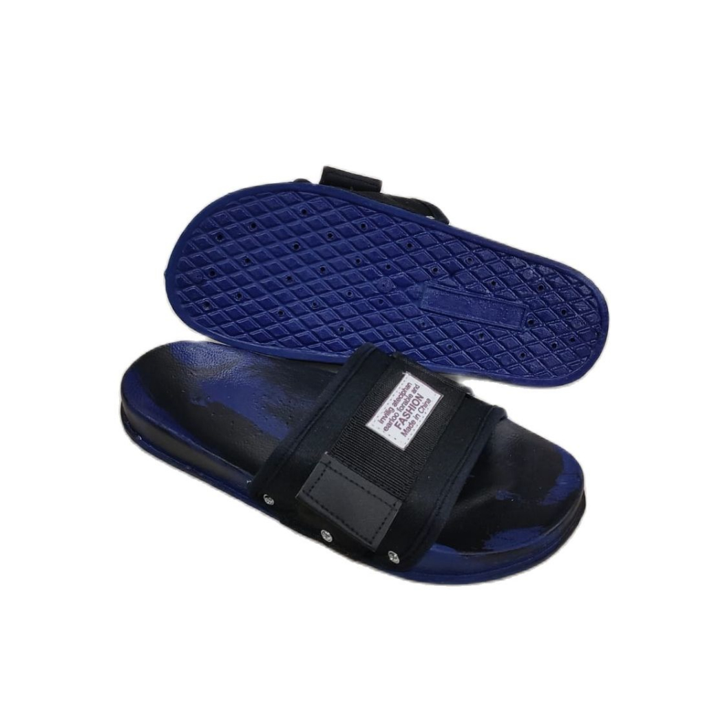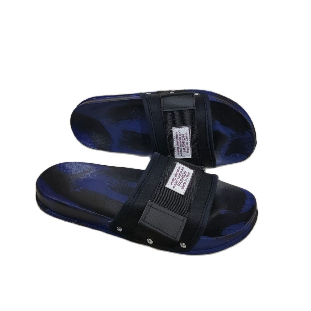 Agnia - Fashion 01 Loreng Biru Hitam - Sandal Slop Pria Terbaru / Sandal Pria/Sandal Slop Pria Kekinian 2025