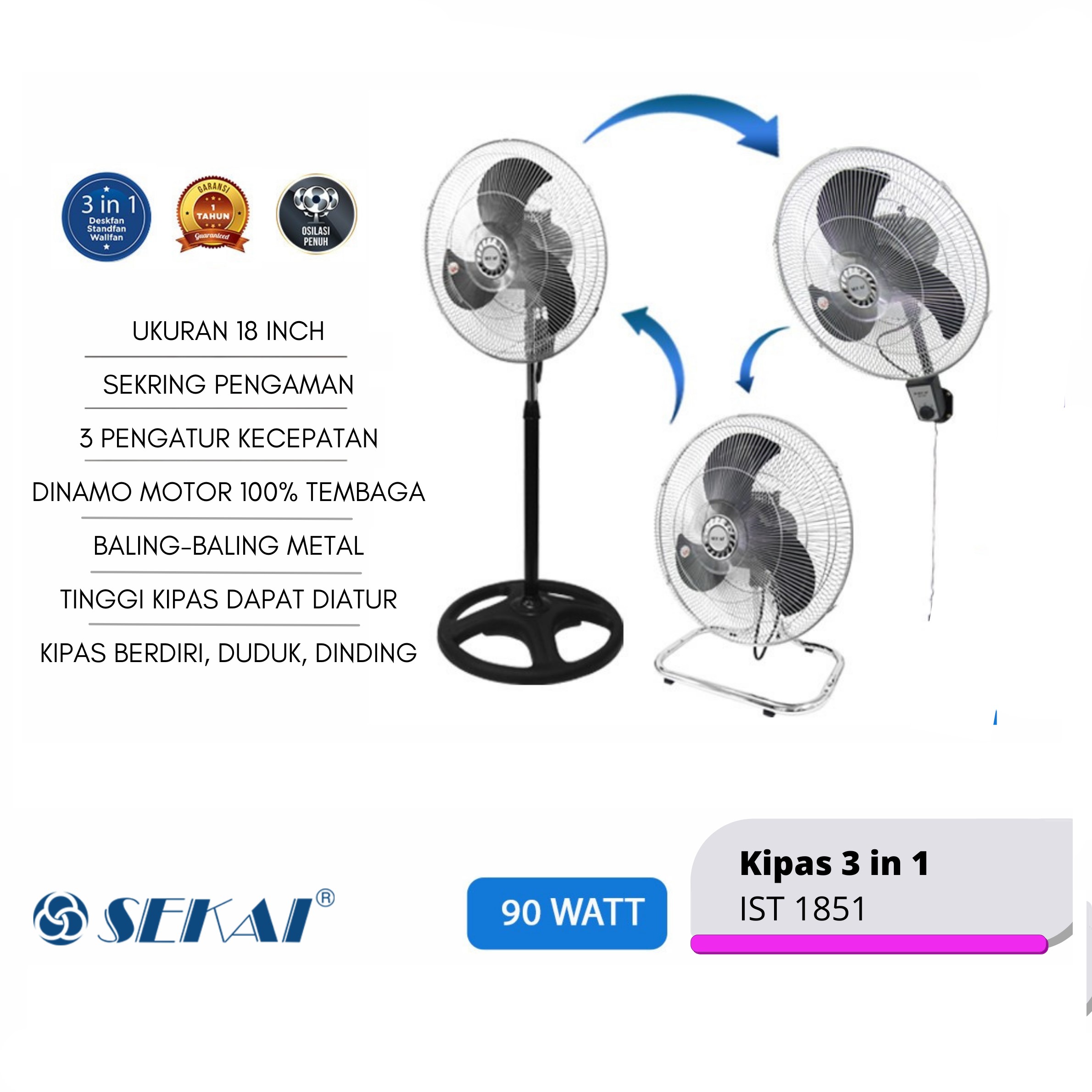 Kipas angin Sekai IST-1851 Industrial Fan / Kipas Angin 3in1 18" / Kipas Angin Sekai 18 inch / Kipas Tornado
