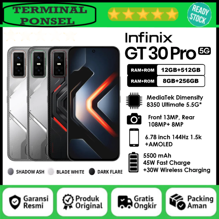 Infinix GT 30 Pro 5G 8/256GB NFC (EXTEND RAM 16GB) GARANSI RESMI - INFINIX GT 30 PRO 12/512GB