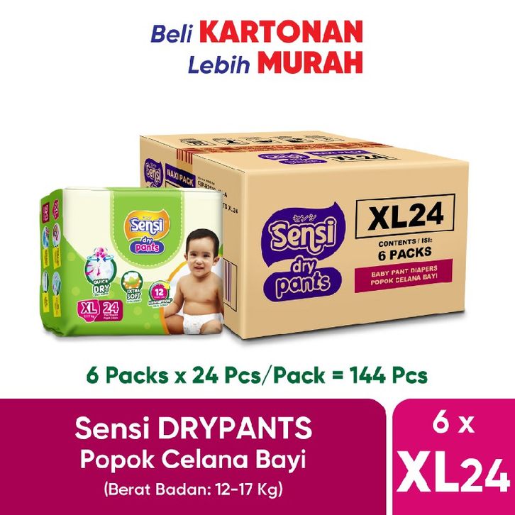 Popok Pampers Pempes SENSI DRY PANTS KARTON XL24 x 6 Pack 144 Pcs Tipe Celana 1 Dus Termurah