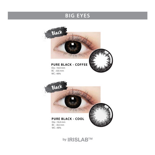 SOFTLENS PURE BLACK NORMAL & MINUS (-0.50 SD-6.00) BY IRISLAB 16MM BIGEYES / PUREBLACK