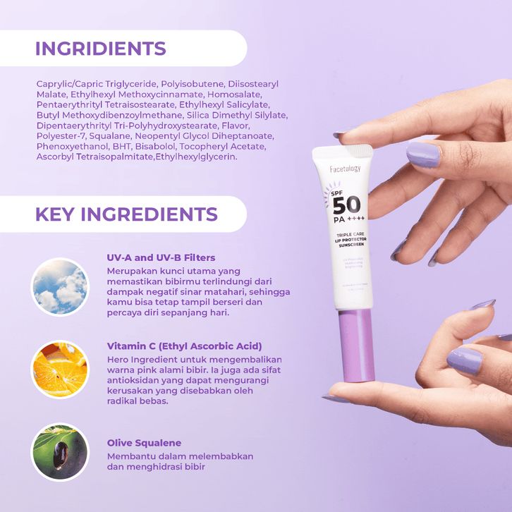 LIP SERUM FACETOLOGY TRIPLE CARE LIP PROTECTOR SUNSCREEN PELEMBAB BIBIR MENCERAHKAN