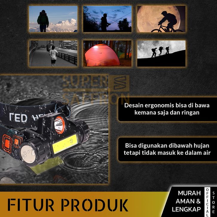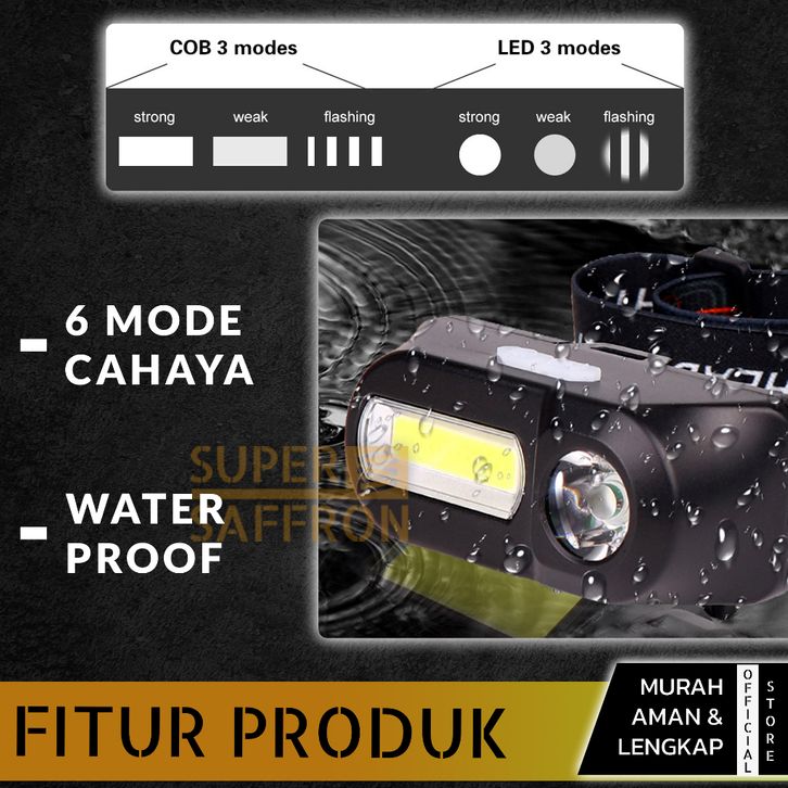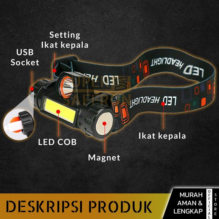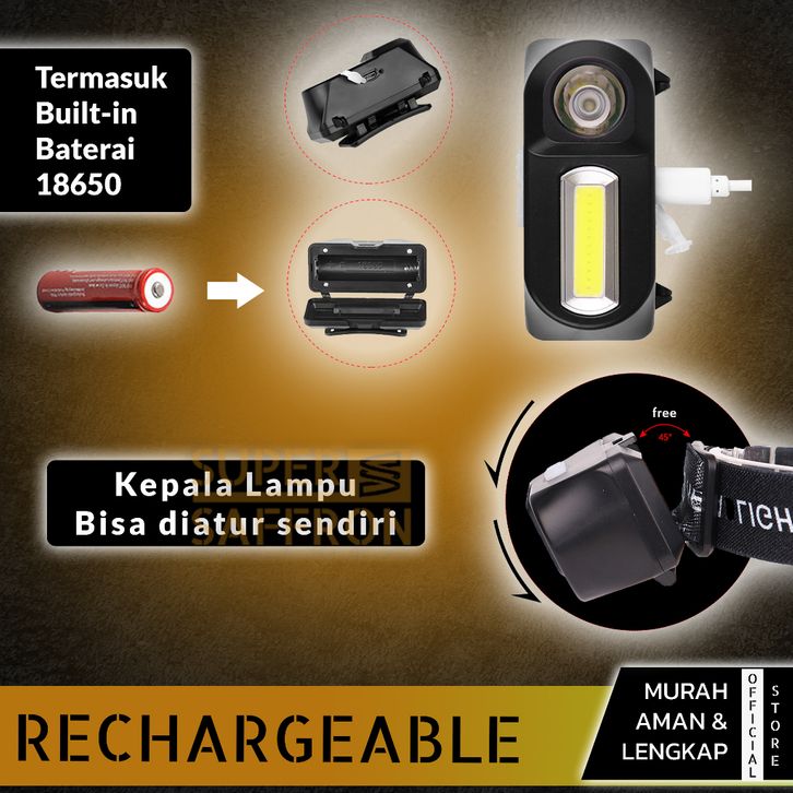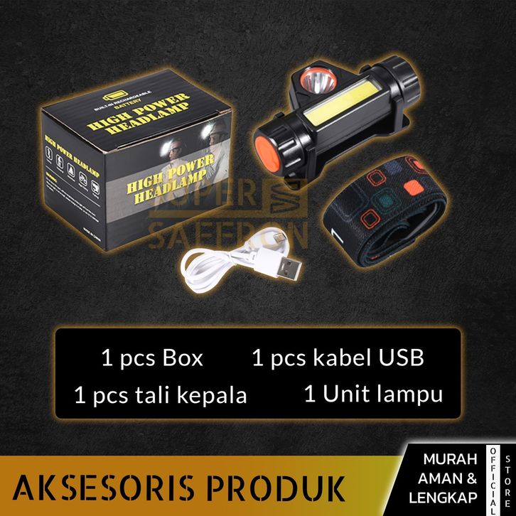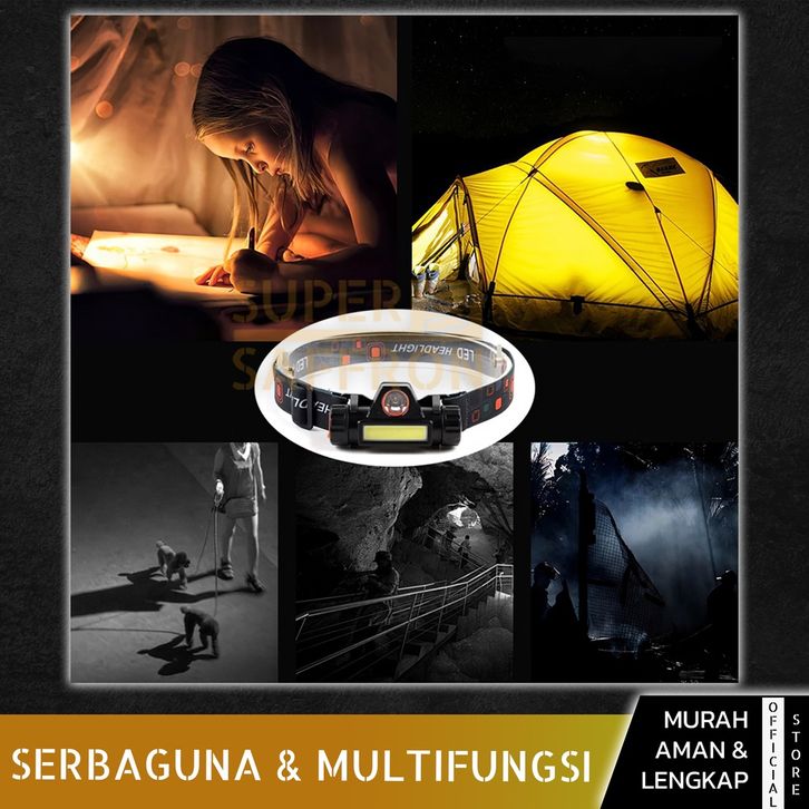 Senter Kepala Mini COB XPE Headlamp Bisa Putar Copot Cas USB - Lampu Senter Hiking Camping Gunung - Lampu Memancing