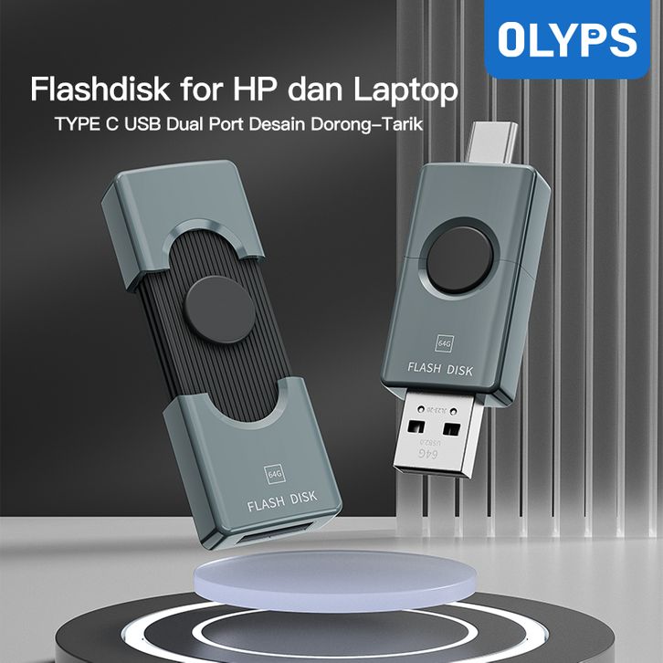 Flashdisk OTG Type C OLYPS Flashdisk OTG 64GB 32GB TYPE C + USB Dual Port Flash Drive High Speed