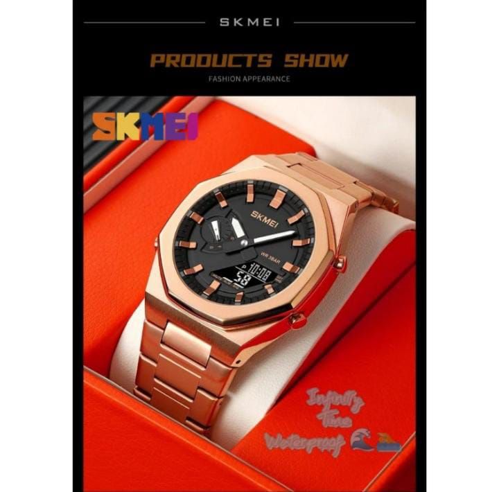 Jam Tangan Skmei 1816 Cowok Analog Digital Rantai Stainless Kualitas Original Waterproof