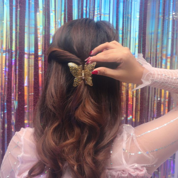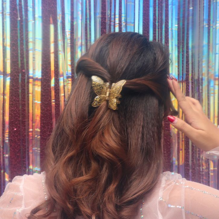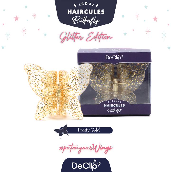 NEW DeClip Jedai Butterfly Haircules Jepit Kupu Gigi 4 Ukuran 4,5cm Warna Frosty Gold Glitter