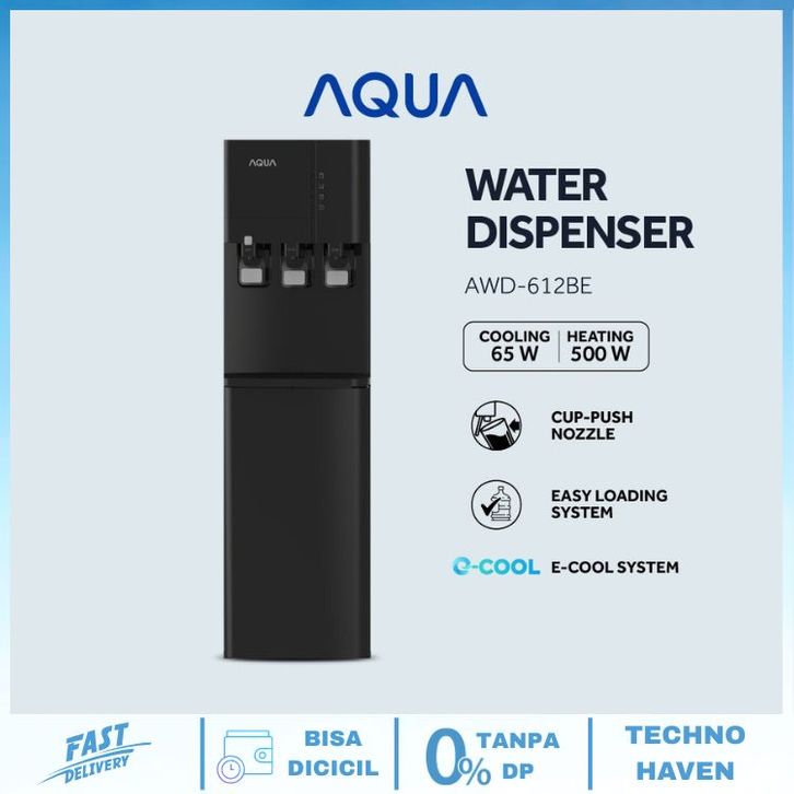 DISPENSER GALON BAWAH PANAS DINGIN ES AQUA AWD-612BE DISPENSER BERDIRI 3 KRAN MURAH BERKUALITAS POLYTRON COSMOS SHARP