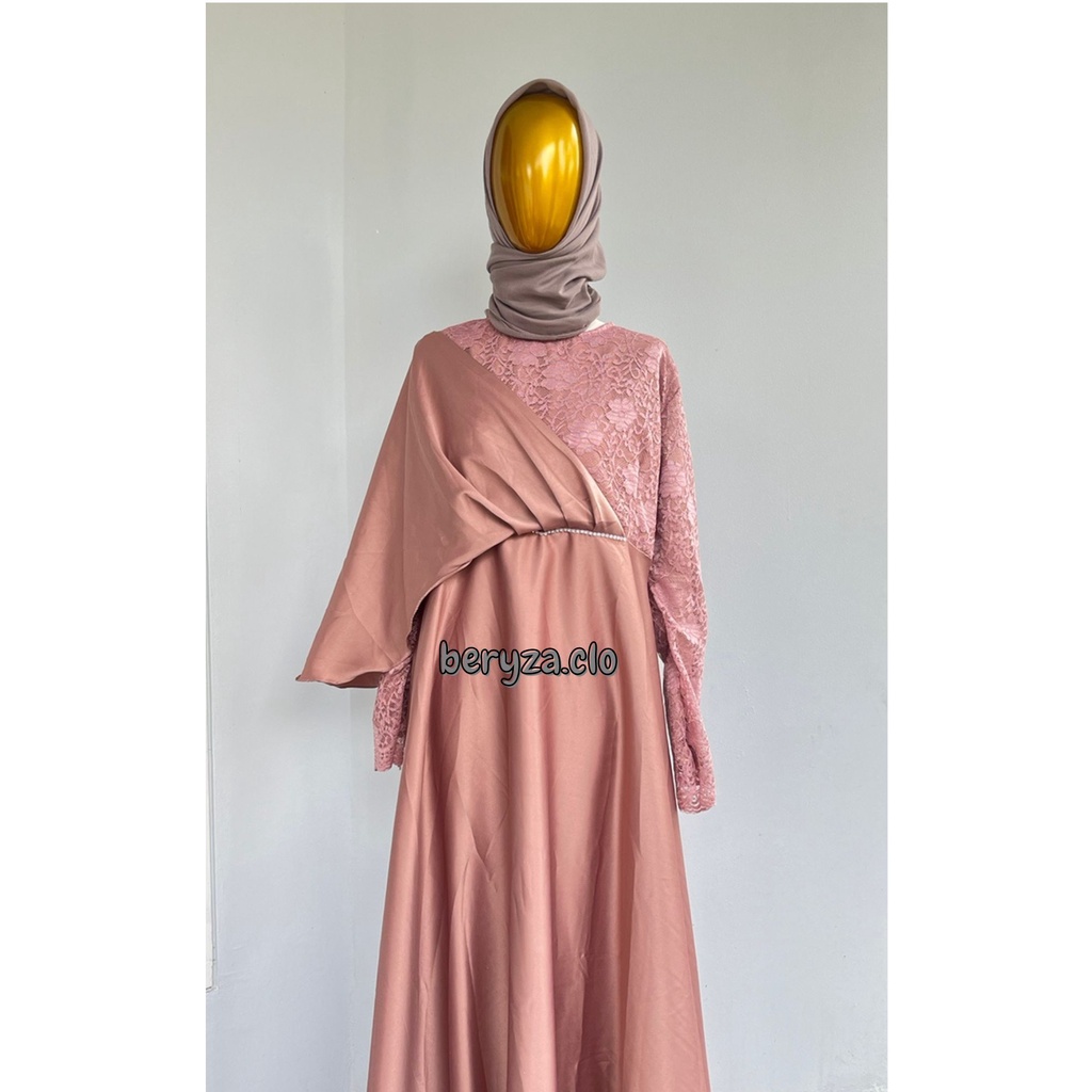 DRESS SATIN ROBERTO GAMIS BRUKAT SERAGAM BRIDESMAID, KONDANGAN, PESTA, LAMARAN, SIZE M, L, XL, XXL