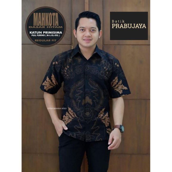 MAHKOTA PDK Kemeja Batik Pria Modern Premium Lengan Pendek Terbaru Baju Hem Batik Pria Hitam Tangan Pendek Cowok