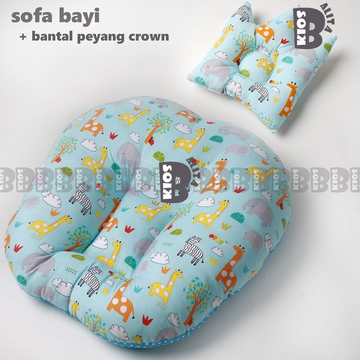PAKET KASUR BAYI SOFA BAYI MULTIFUNGSI + BANTAL DOT + BANTAL PEYANG BAYI CROWN [TERMURAH!!]