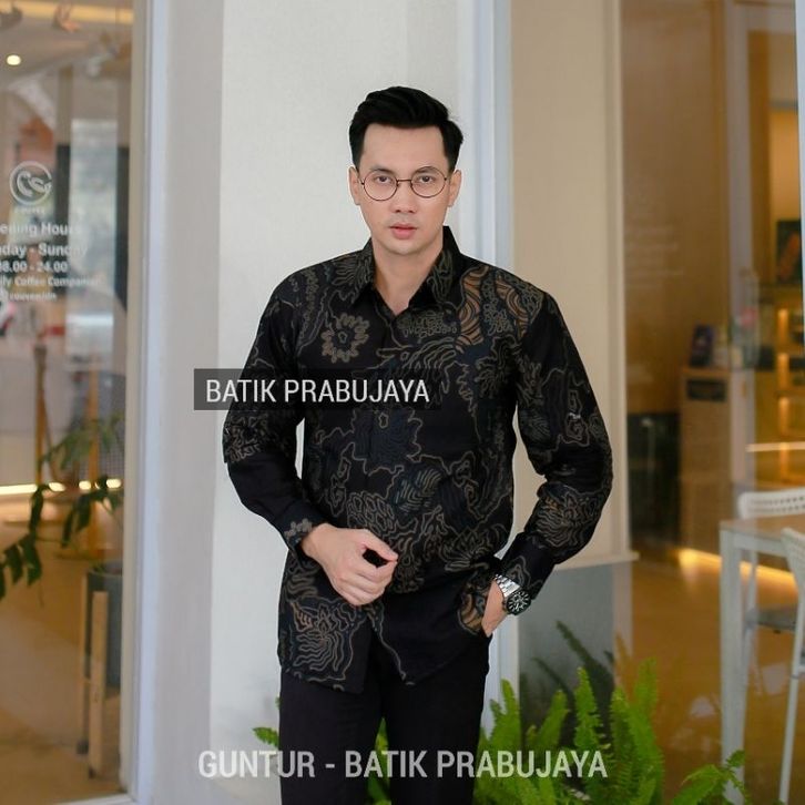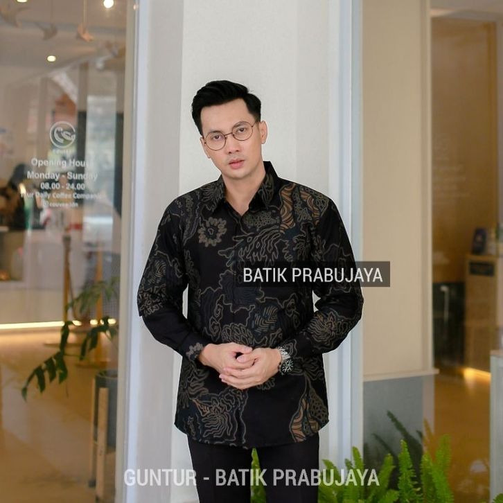 GUNTUR Kemeja Batik Pria Modern Slimfit Premium Lengan Panjang Full Furing