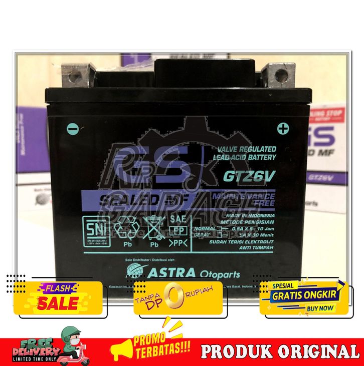 BATERAI/ AKI MOTOR MF (MAINTENANCE FREE)/ BATERAI/ AKI KERING GS ASTRA ASPIRA GTZ6V 5AH GTZ5S 3,5AH