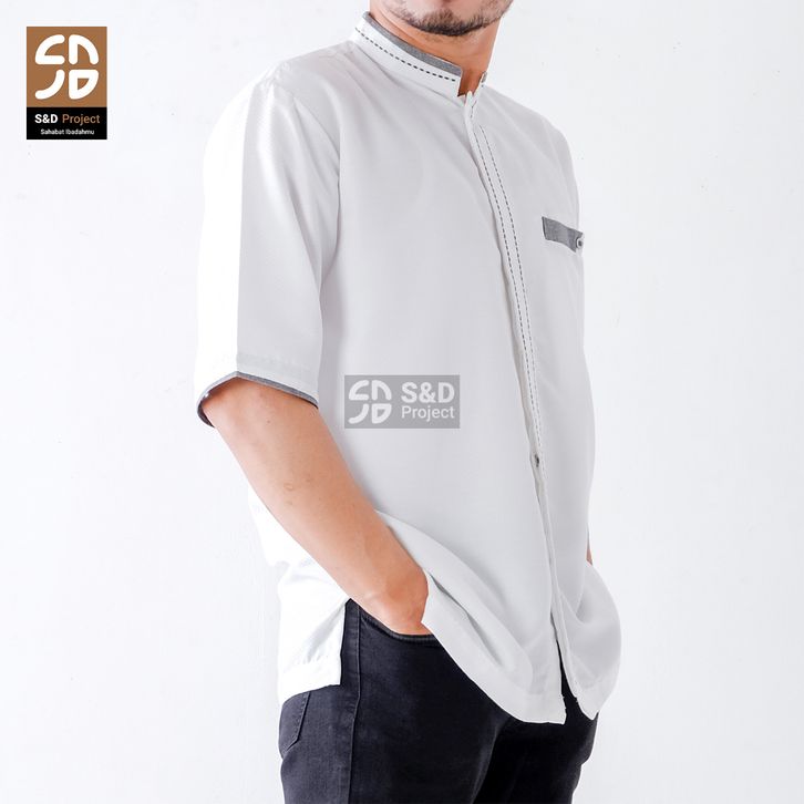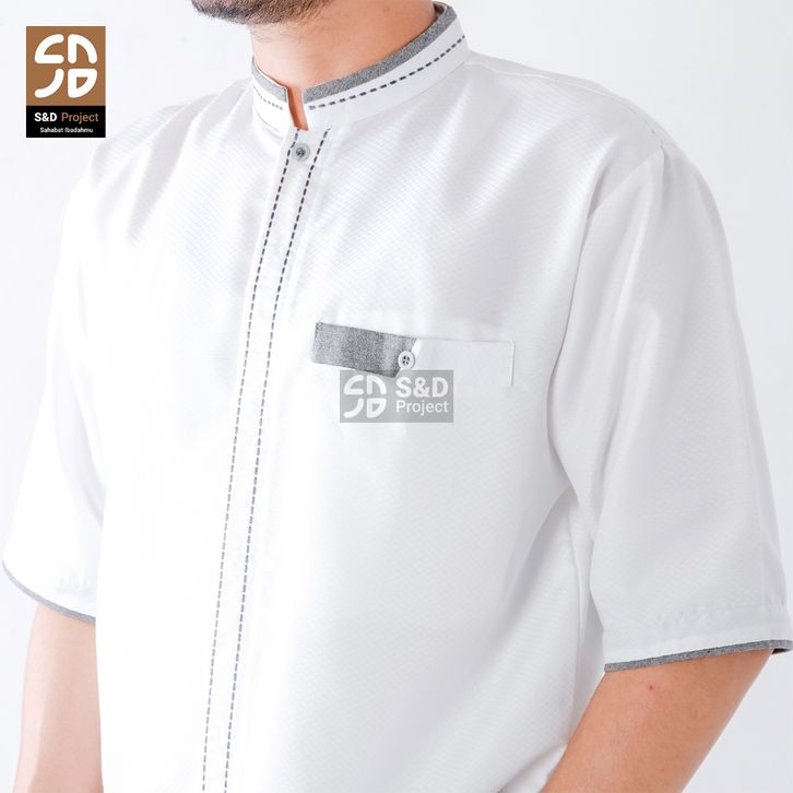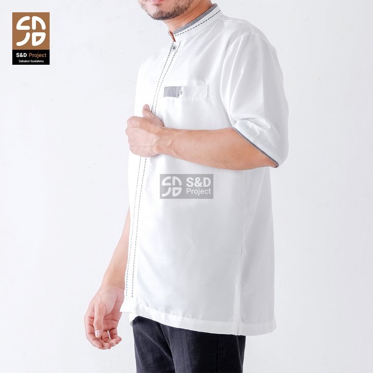 Baju muslim Pria Lengan Pendek Koko Poli Putih Tulang Katun Bordir Terlaris