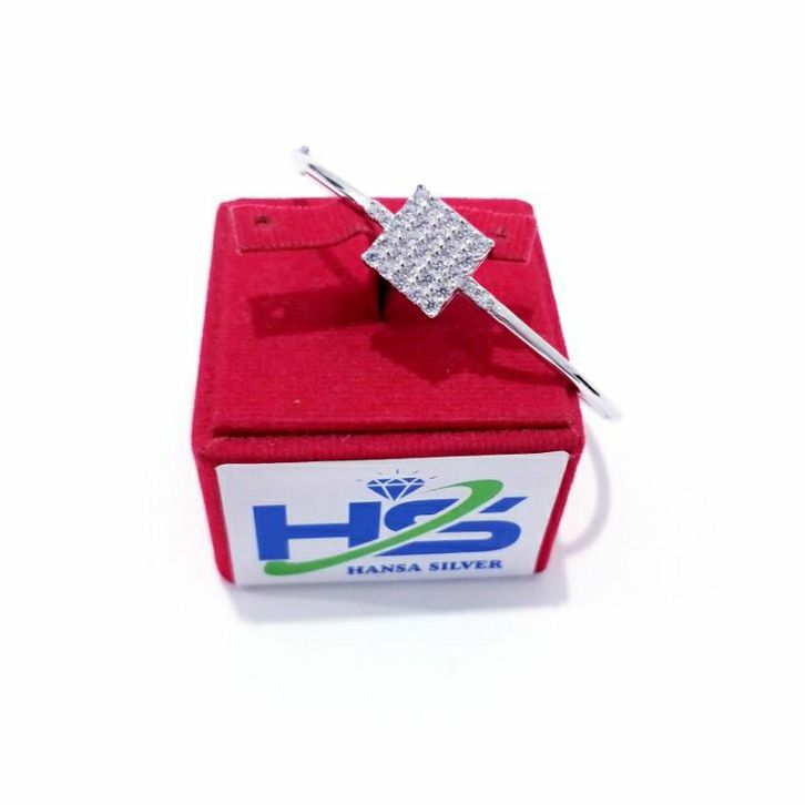 Gelang Perak Asli Silver 925 Lapis Emas Putih Model Bangle Permata Bulat Dan Kotak - Gelang Perak Wanita Anti Karat