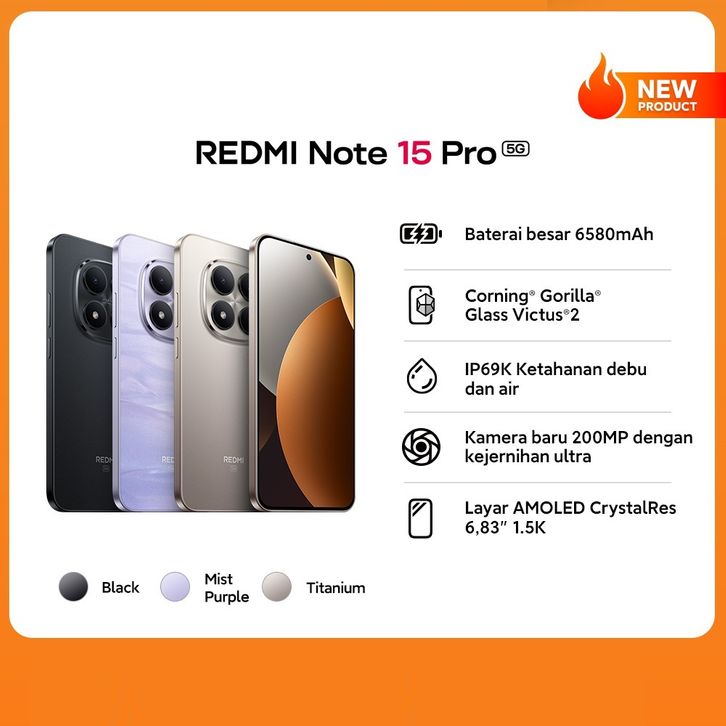 XIAOMI REDMI NOTE 15 PRO 5G 8/256GB BATERAI 6580MAH KAMERA 200MP DENGAN ULTRA LAYAR 6,83" 1.5K HP XIAOMI ORIGINAL