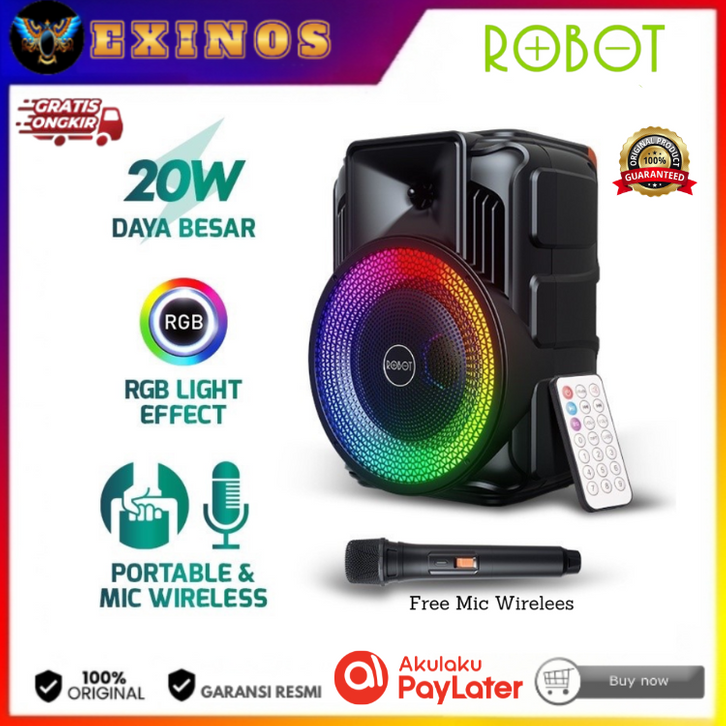 ROBOT RB500 Speaker Bluetooth Karaoke 5.0 Audio Wireless Super Bass Portable LED - Garansi Original Resmi