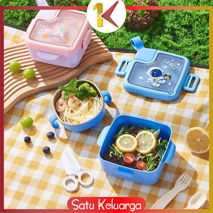 SK-C940 Tempat Makan Anak Karakter Kartun dengan Mangkuk Set Sendok Garpu Gunting BPA FREE / Lunch Box Set Kids Astronot