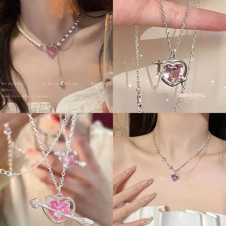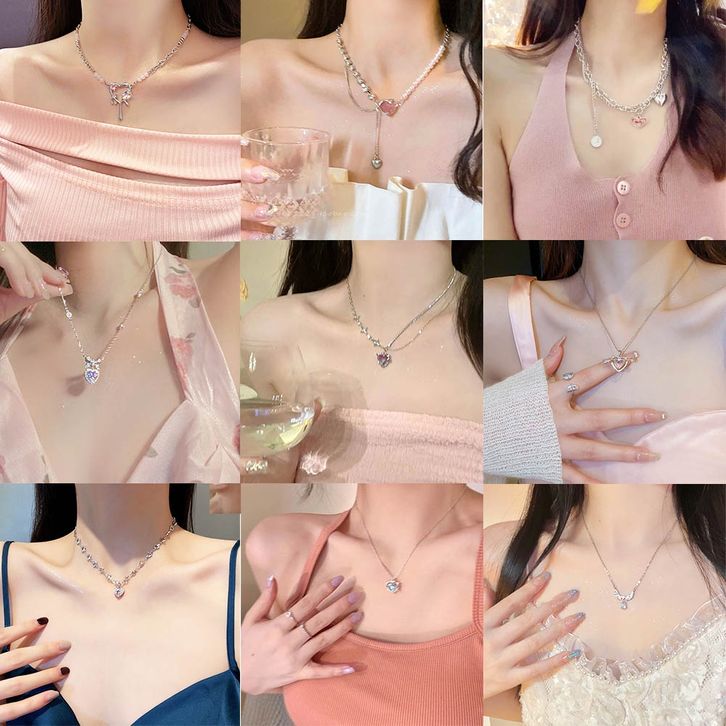 IFYOU Fashion Cinta Ganda Pasangan Kalung Vintage Perak Choker Rantai Liontin Kalung Untuk Wanita Perhiasan Aksesoris