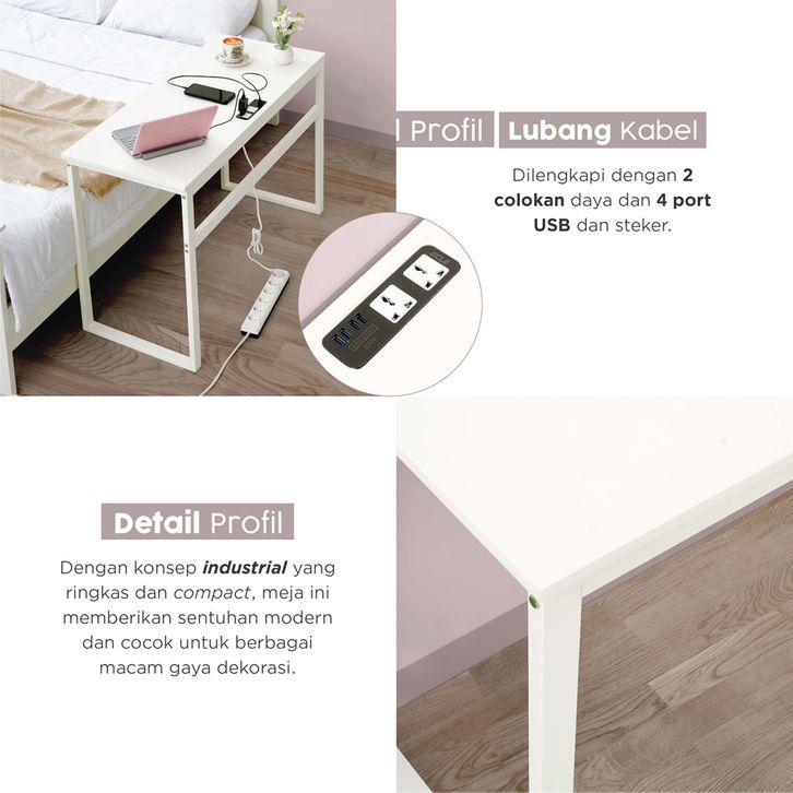IFURNHOLIC Ecle USB Desk | Meja Kerja Belajar Kayu Minimalis Modern