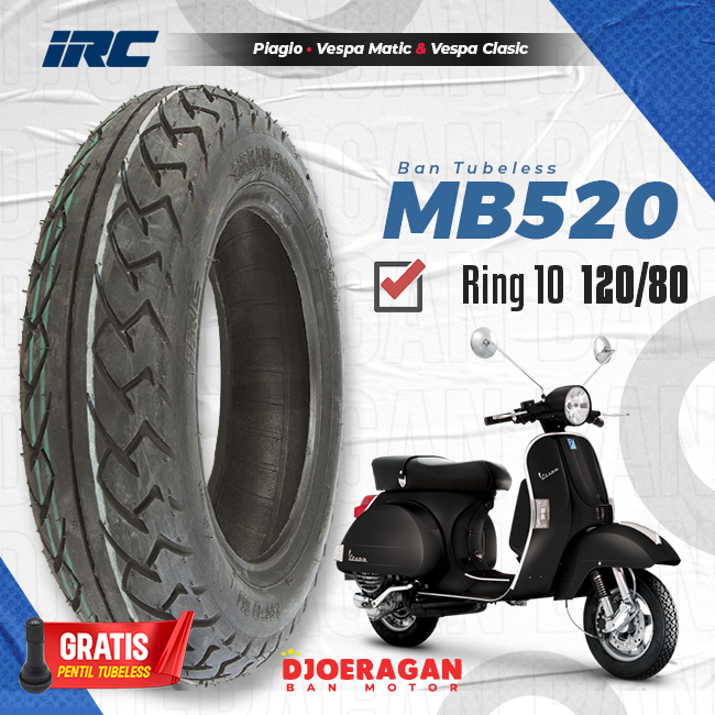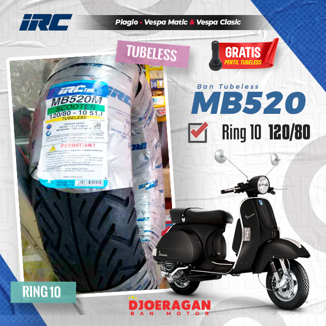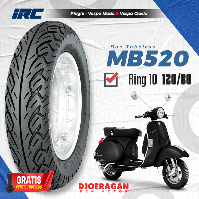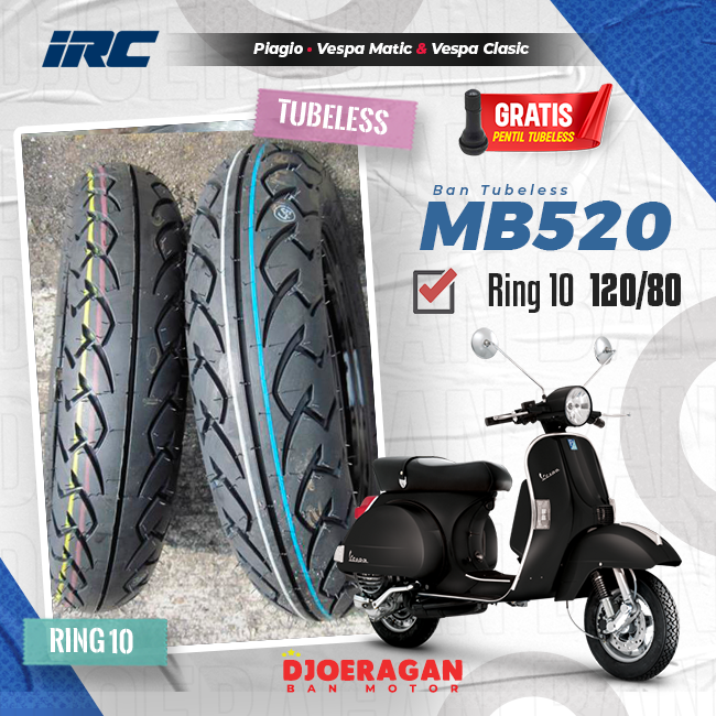 Ban Motor IRC MB520 Ring 10 120/80 Vespa Lx belakang Tubeless