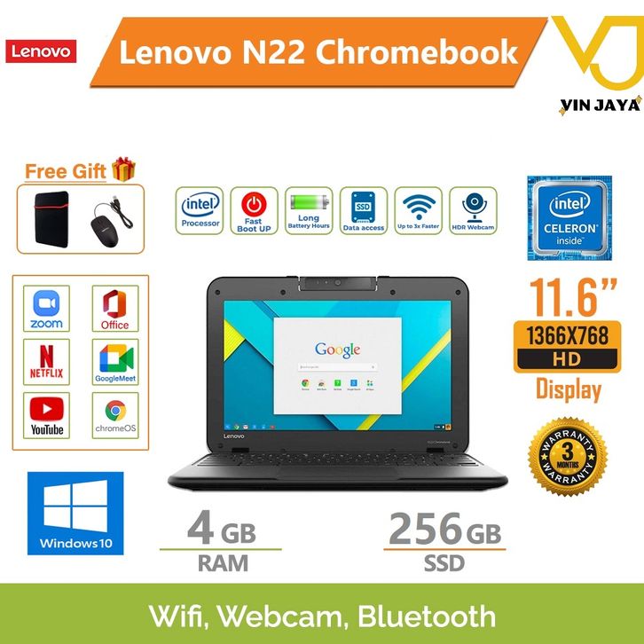 LAPTOP SLIM KAMERA FLIP LENOVO N22 INTEL CELERON N3050 RAM 4GB SSD 256GB (FREE MOUSE)