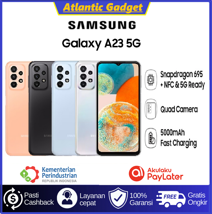 (BEBAS ONGKIR) Samsung A23 5G RAM 8/128GB Garansi Resmi | Snapdragon® 695 5G | Quad Kamera 64MP | Layar 6.6" 120Hz | NFC